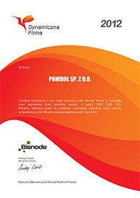 Firma Pawbol Sp. z o.o. otrzymała Certyfikat Dynamiczna Firma 2012.