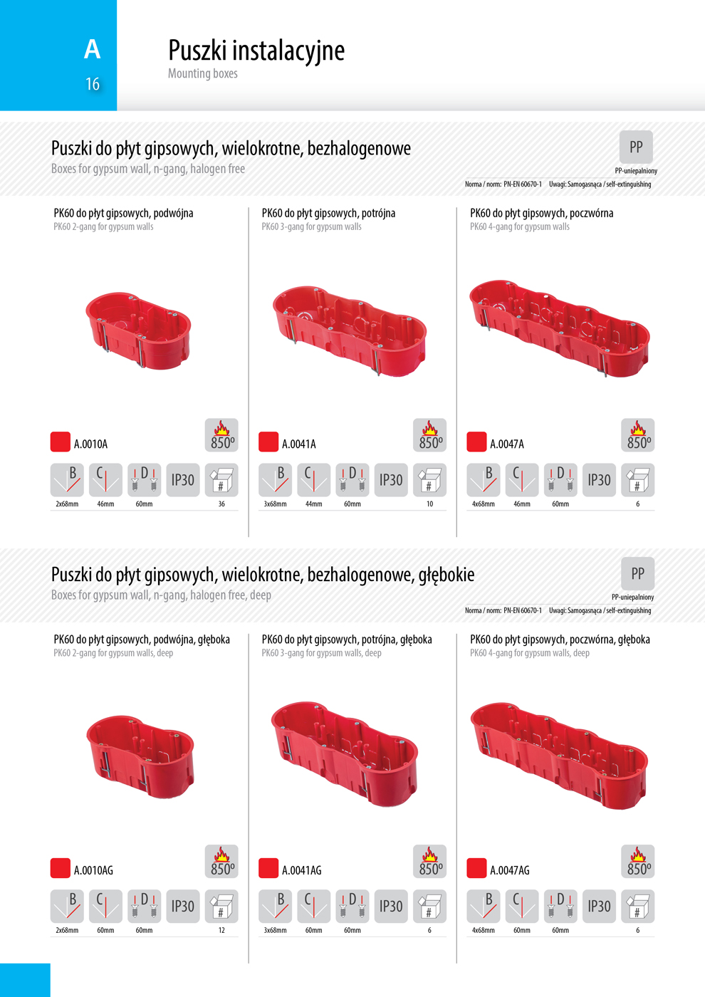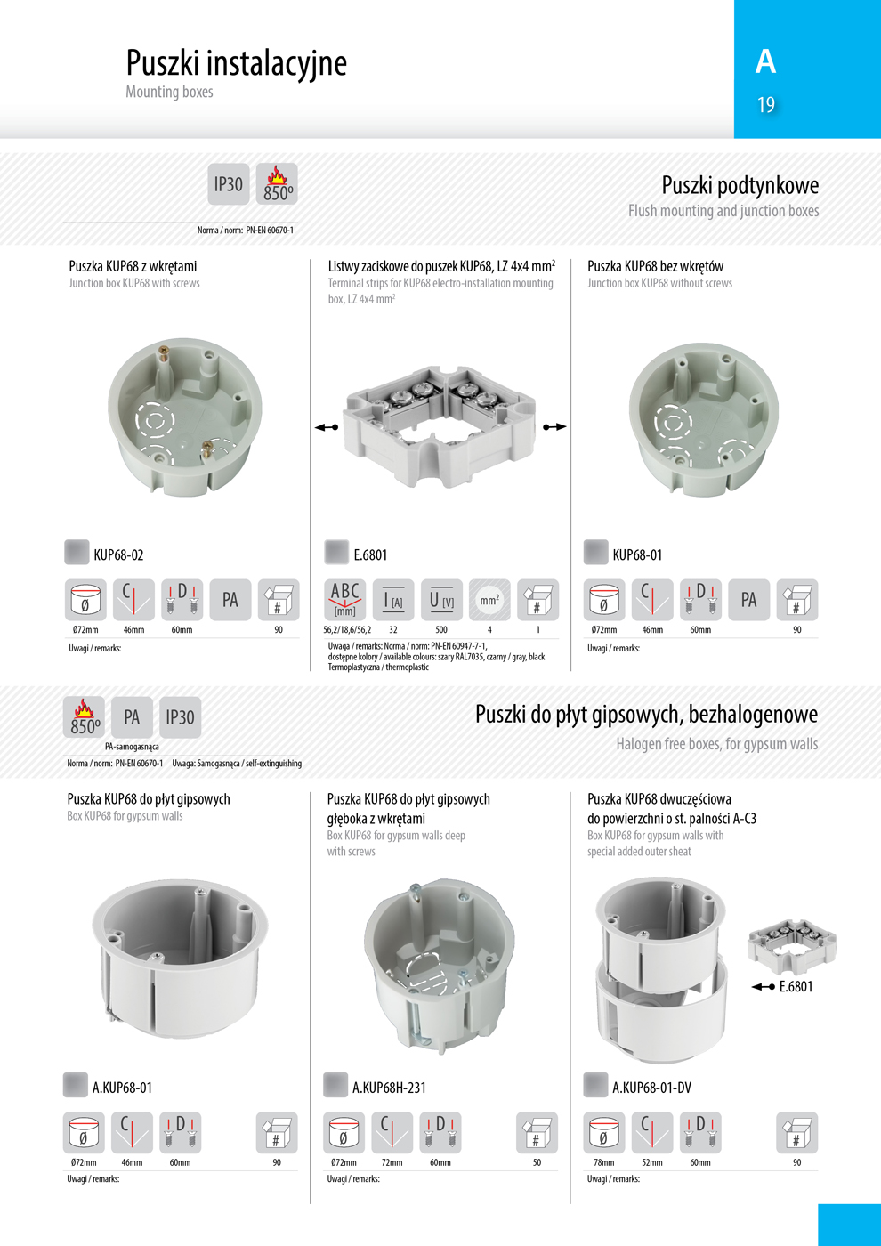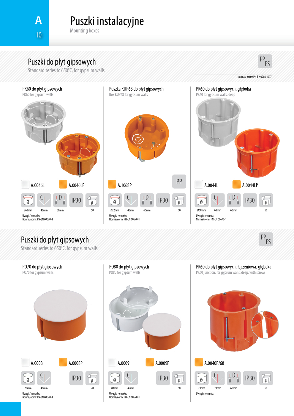 Puszki instalacyjne - grupa produktów A